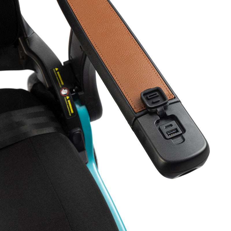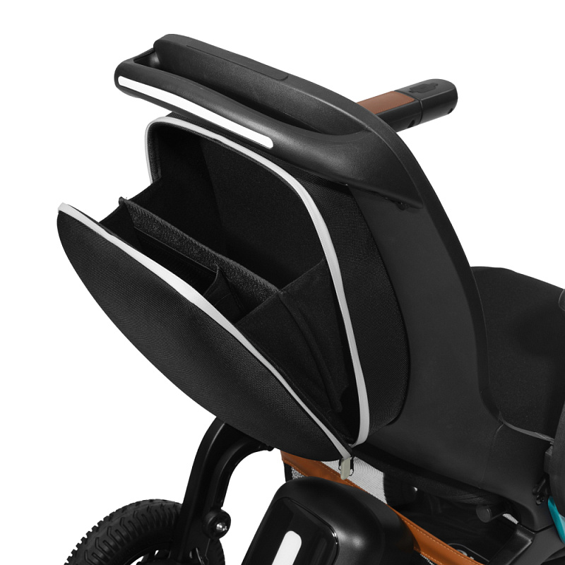 Встроенный фонарик с сенсорным управлением и световой элемент на боксе аккумулятора, делают коляску заметной в темное время суток и обеспечивают безопасность.