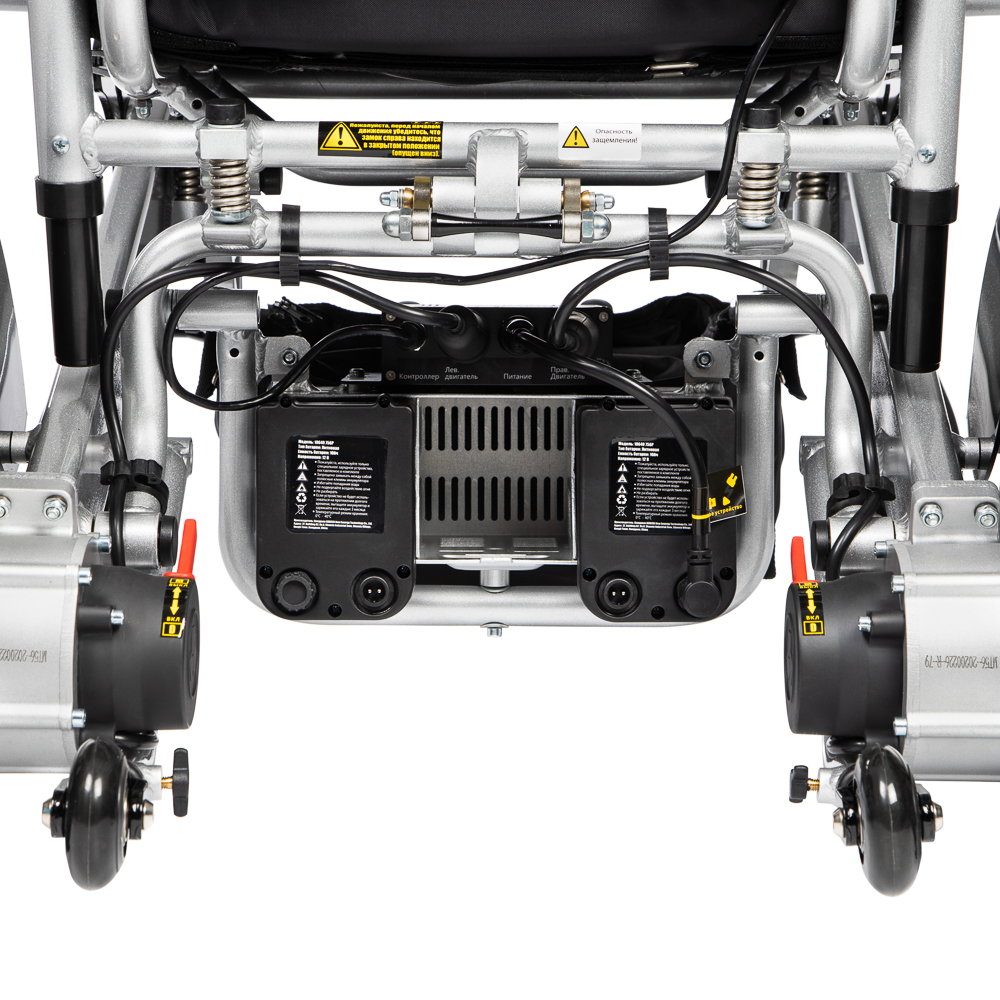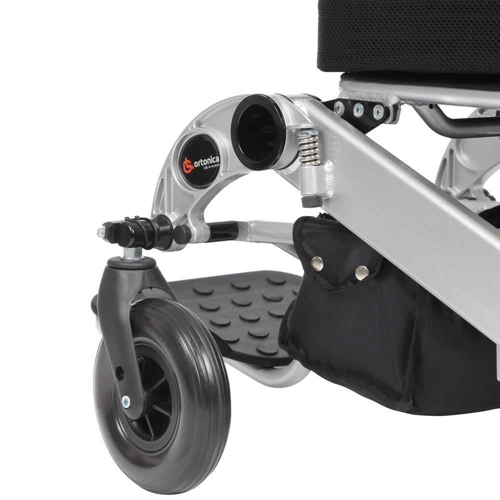 Коляска инвалидная с электроприводом Ortonica Pulse 640 - легкая и прочная с удобным механизмом складывания без съема аккумуляторов. Модель в сложенном виде не превышает размеров дорожного чемодана. Регулируемая по жесткости пружинная подвеска сиденья и независимая подвеска передних колес предохраняют позвоночник от вибраций и обеспечивают плавность хода.