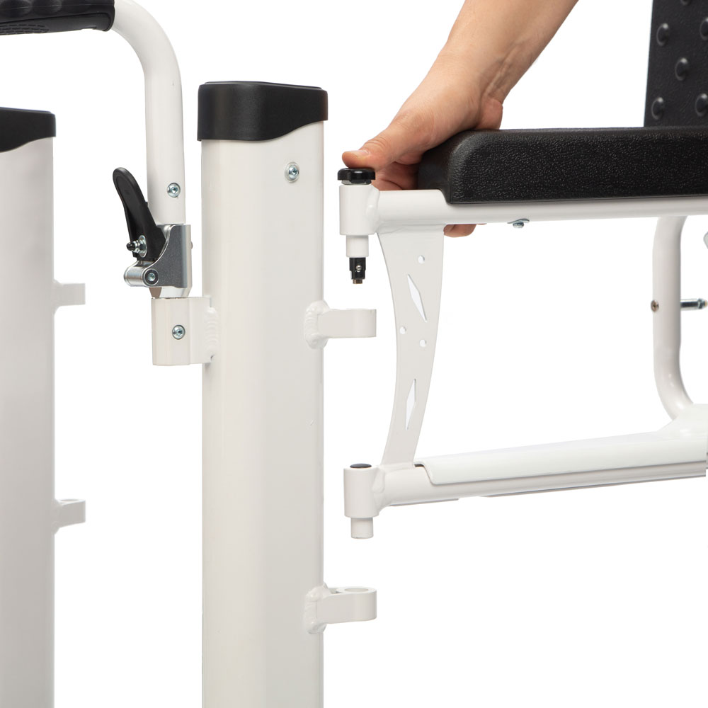 Кресло-стул облегчает пересаживание с кровати на коляску. Его удобно использовать при перемещении, в том числе в туалет и ванную комнату. При необходимости заменяет стационарный унитаз. Удобен при использовании рядом со столом, раковиной и другой мебелью.